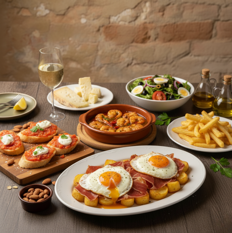 Huevos rotos con jamón serrano